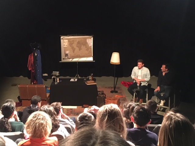 Jeudi 27 mars tous les élèves de 5e et de 6e ont assisté à une représentation théâtrale à l’auditorium de Chaponost. La compagnie ART’SENIC a revisité une pièce de Jules Verne, l’écrivain seul en scène raconte une de ses histoires en jouant tous les personnages et en usant d’une mise en scène ingénieuse pour nous emmener tour à tour dans les océans, l’espace et sous terre. A l’issue de la représentation les élèves on pu poser leurs questions à l’acteur et au metteur en scène.